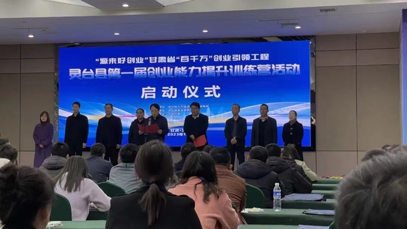 11月29日,“源來好創(chuàng)業(yè)”甘肅省“百千萬”創(chuàng)業(yè)引領(lǐng)工程靈臺縣第一屆創(chuàng)業(yè)能力提升訓(xùn)練營啟動儀式在市級創(chuàng)業(yè)孵化基地靈臺縣正宇建筑公司會議室隆重舉行??h委常委、縣委組織部部長李逢春同志應(yīng)邀出席儀式并講話,縣政府就業(yè)工作領(lǐng)導(dǎo)小組成員單位分管負責(zé)同志和各鄉(xiāng)鎮(zhèn)及縣城市社區(qū)領(lǐng)隊、參訓(xùn)學(xué)員共110多人參加活動。
